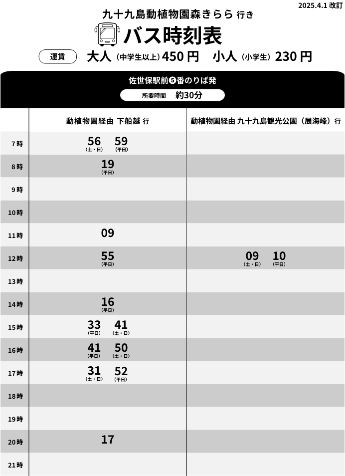 3歳以下:無料 - 休日