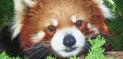 広い園内に、キリン、クマ、レッサーパンダなどの動物が飼育されています。